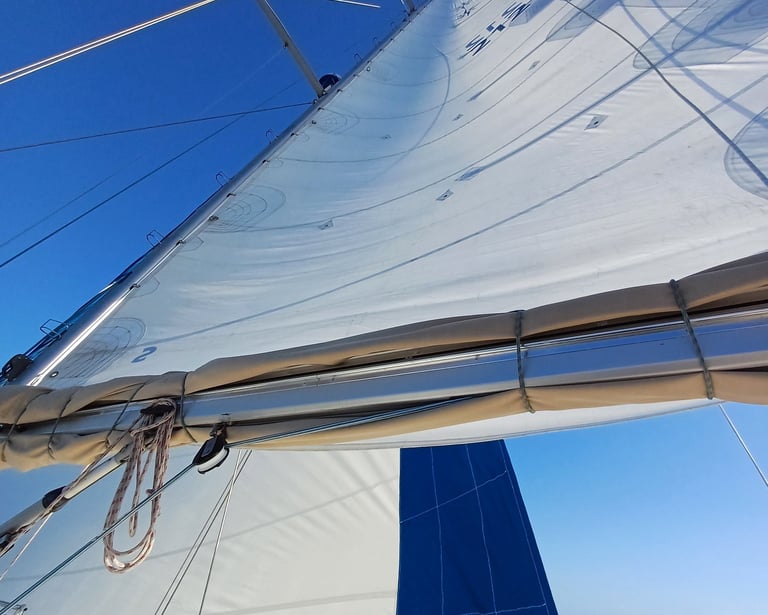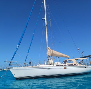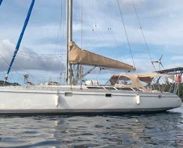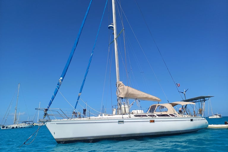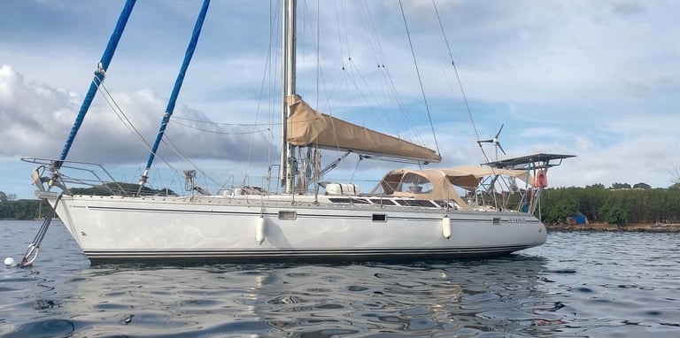Cotre avec génois et trinquette sur enrouleurs PROFURLS en bon état,